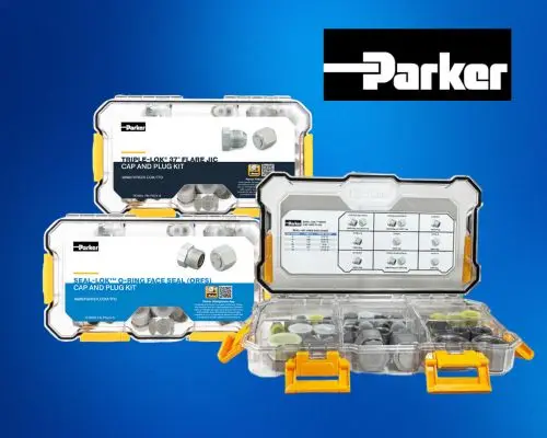 Triad began stocking Parker Hannifin cap and plug kits in August. These essential kits are designed for protection and maintenance, ensuring your hydraulic lines and components remain clean and secure during service or storage. In-stock at any of our ParkerStores, we offer a comprehensive selection of options, including 37° Flare JIC, O-Ring Face Seal, BSPP, DIN Light and DIN Heavy.